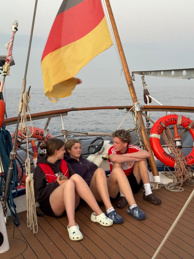 Heute hat der Tag direkt mit wichtigen Infos gestartet. Unser neuer Kapitän Thomas hat uns noch einmal eine kurze Sicherheitseinweisung gegeben. Wir wussten die Sachen natürlich schon von Norbert, aber eine Auffrischung schadet ja nie.