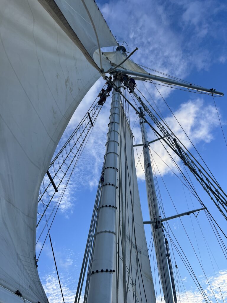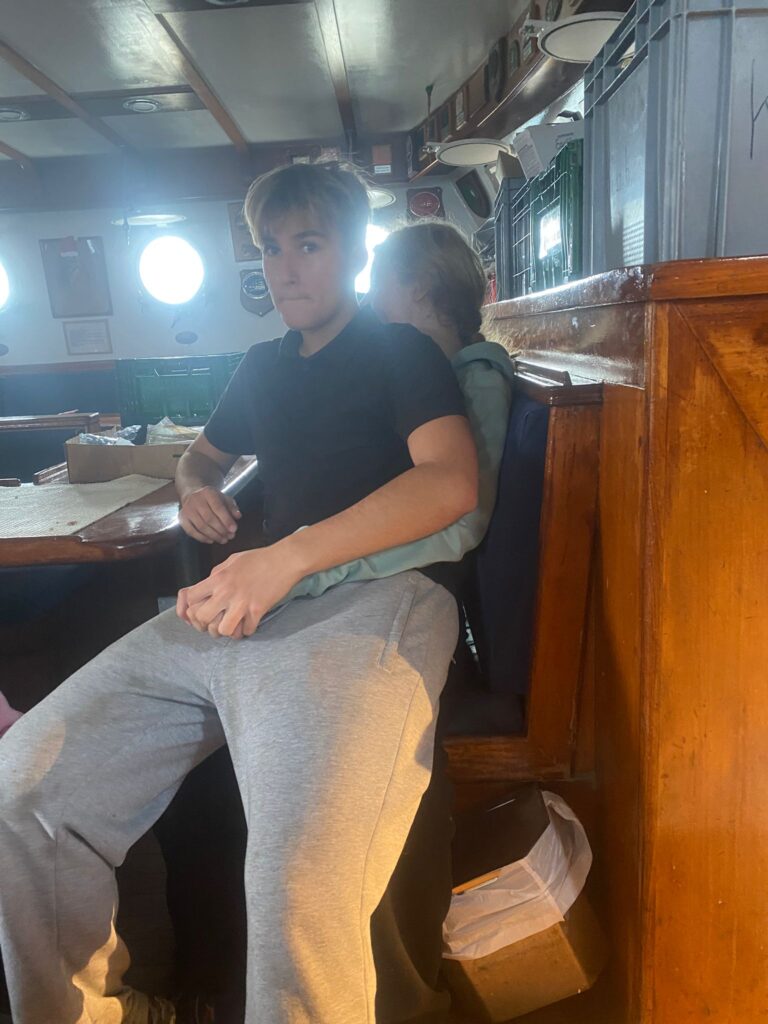 Auch ich habe heute überlegt, welche Fächer ich unterrichten kann und bin auf Spanisch und Deutsch gekommen, morgen soll es anfangen…. Auch der Kapitän hat sich in seiner Rolle schon gut eingefunden und ein besonders gutes Verhältnis zu den Steuerleuten aufgebaut.