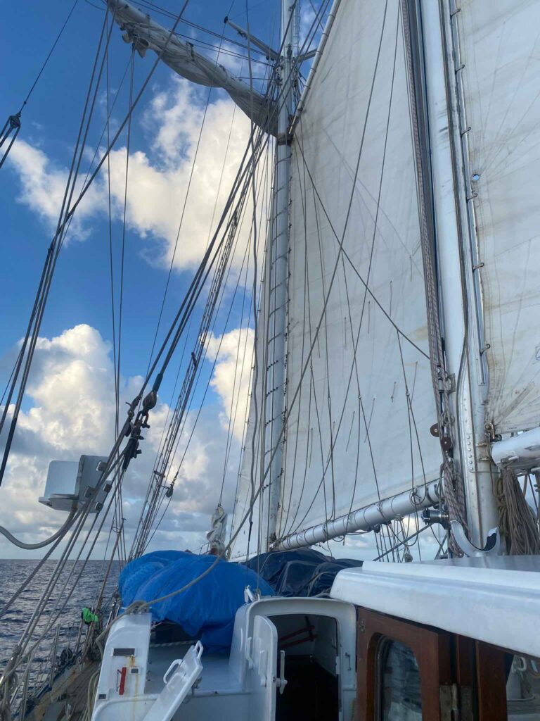 Wir begannen den Morgen damit, die Segel besser einzustellen und den Klüver hatten wir auch gesetzt. Wir segeln jetzt soz. nach Hause und es fühlt sich so an, als ob seit Costa Rica schon eine Ewigkeit vergangen wäre.