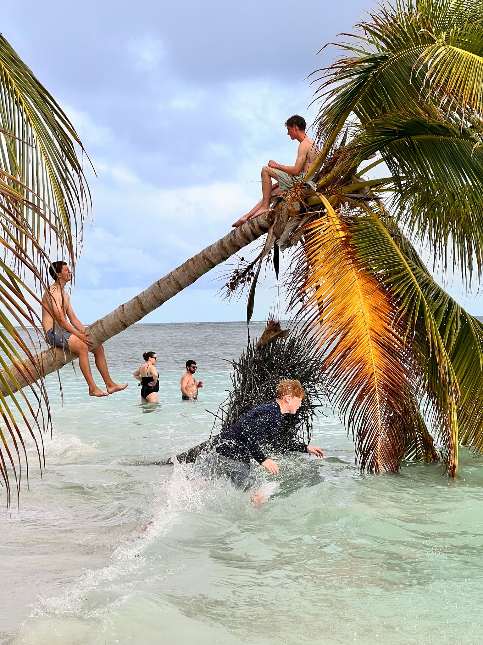 In the afternoon, we went on one of the islands where humans live. It was a really nice time. The island was small but nice. There was a place to play basketball and volleyball and we played both with the kids on the island.