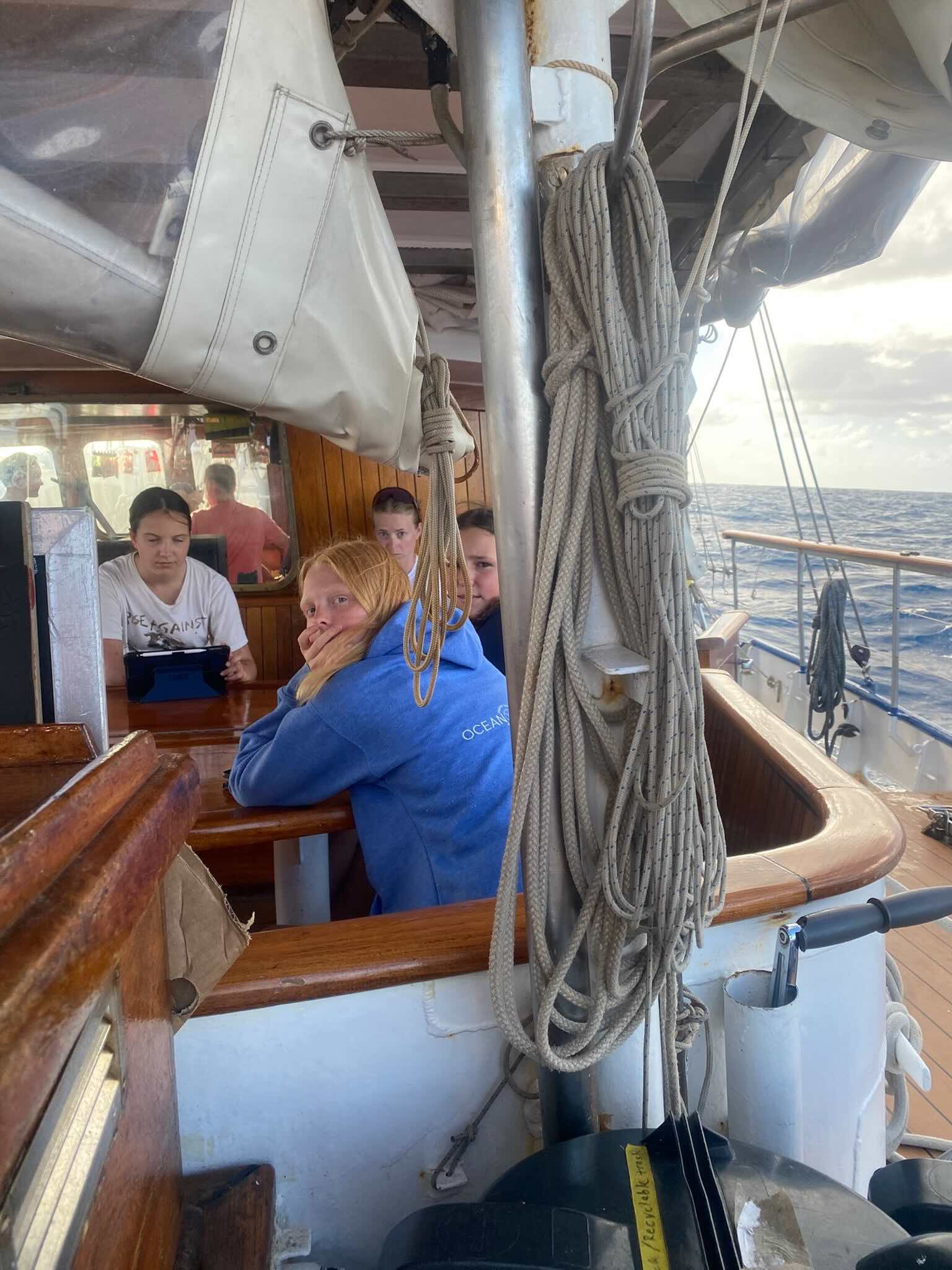 Ebenfalls hatten wir heute wieder einen fantastischen Chemieunterricht mit Sören über Alkane und Isomere. Außerdem haben wir jeden Tag Spanisch mit Birte und Nautikunterricht mit unserem Steuermann Michael, wobei die Tiere auf Spanisch und missweisende Kurse im Zusammenhang mit Magnetfeldern im Nautikunterricht behandelt wurden.