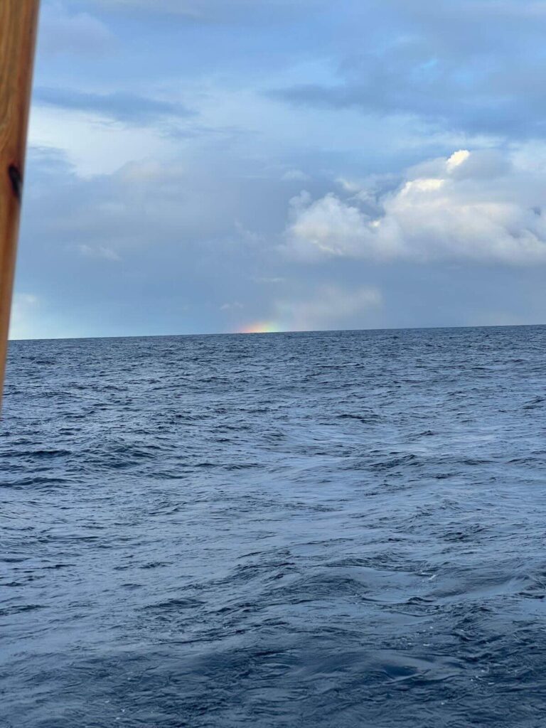 Spät nachmittags ist am Horizont auf einmal etwas Buntes, komisch Aussehendes aufgetaucht. Es sah aus wie eine Regenbogenwolke. Tatsächlich war es auch so etwas Ähnliches: Es war scheinbar ein normaler Regenbogen, der aber nur am Fuß zu sehen war.
