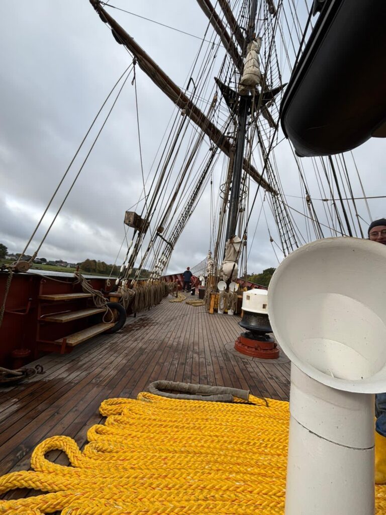 Waking up we realised the engine had already started, so we rushed up in fear of being late on our first day. On deck the whole crew was lined up ready to perform one difficult manoeuvre. We watched them motor the boat out of our safe spot in the harbour, while communicating in a nautical language we did not understand.