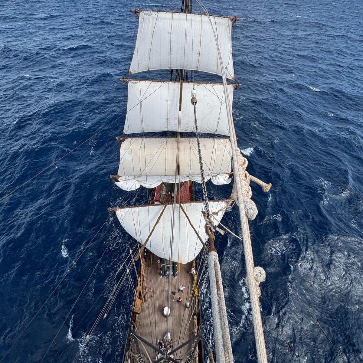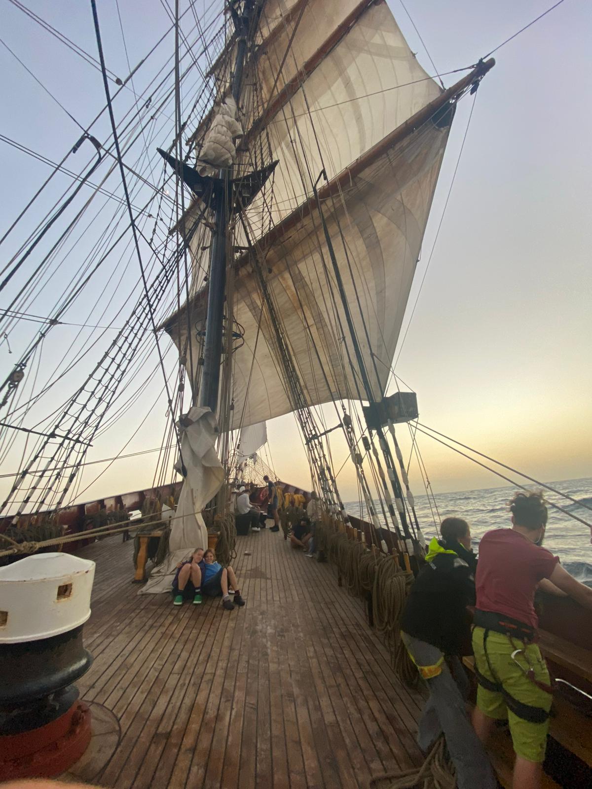 My watch finished with taking down a jib and packing it away. Throughout the day many sails were packed away from both masts. Our captain gave another class about the different types of sail ships and weather.