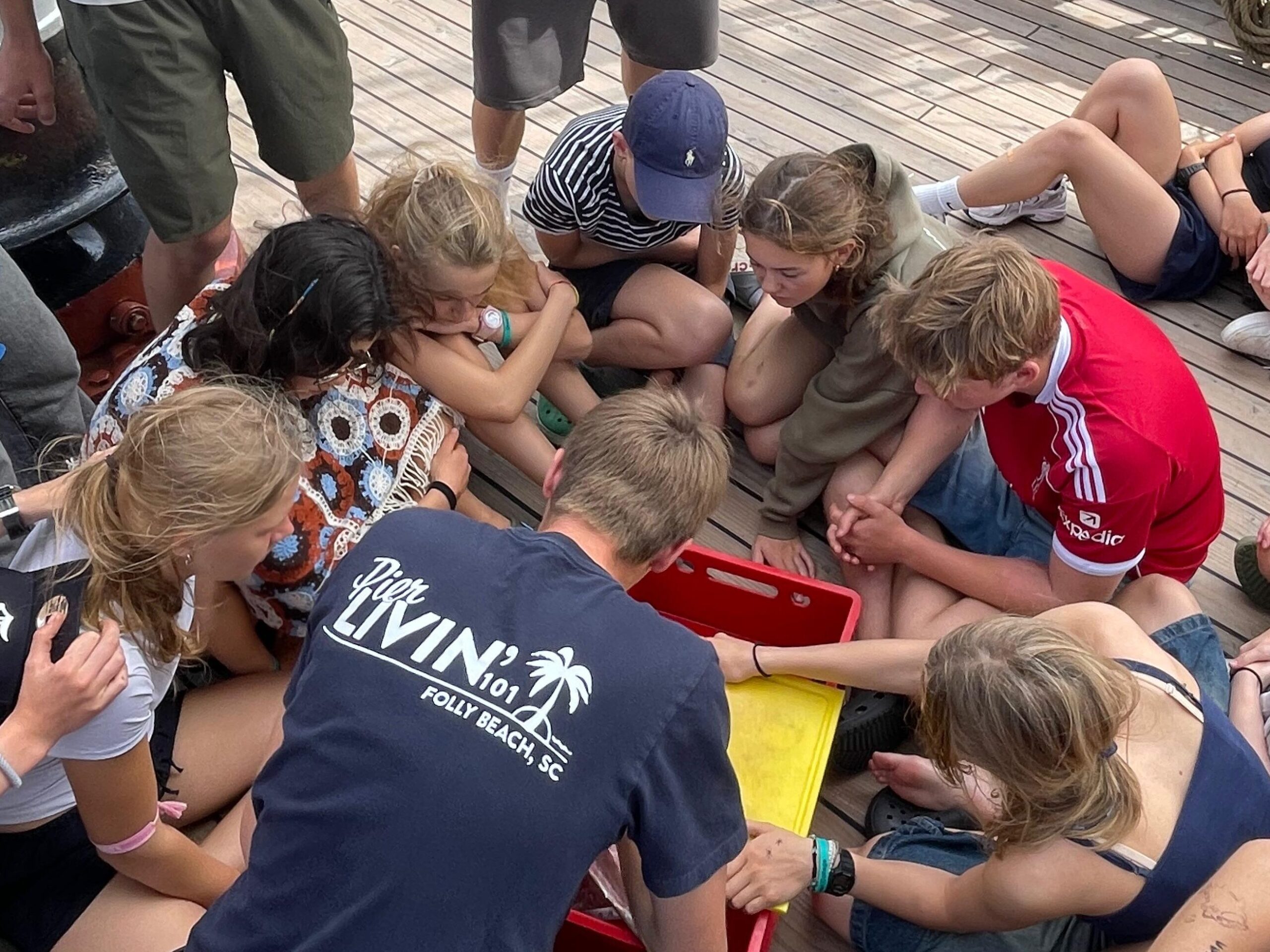 When we got the ship all prepared, we went back to the bridge. I went on to steer the ship for a while and our awesome mate and deckhand brought out snacks for us to enjoy. During our watch two flying fish landed on board that we tried to rescue but sadly we were too late.