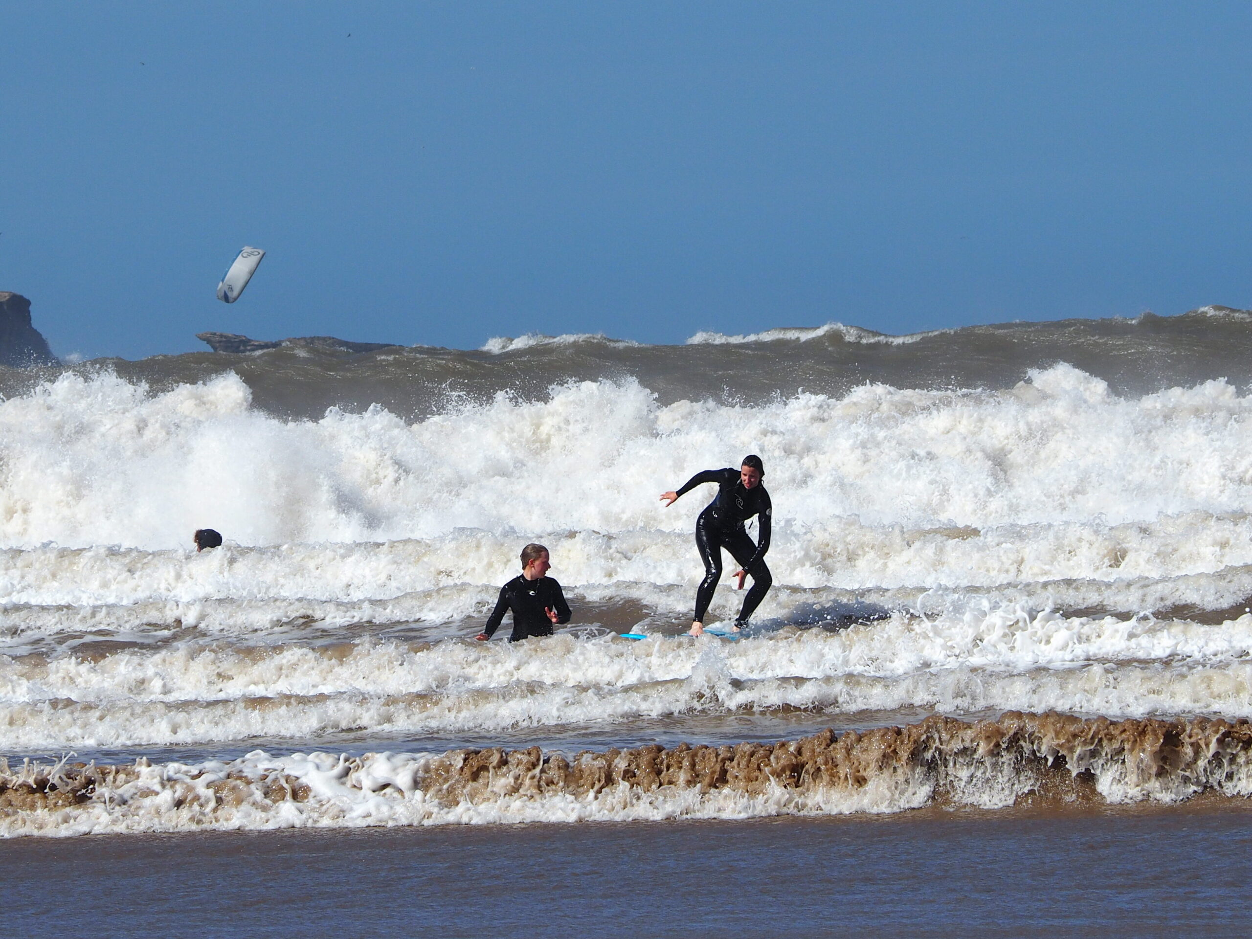 Anschließend ging es für die Gruppe A zum Surfen, was heute besonders anstrengend war, da man gegen sehr starken Wind und dementsprechend auch Wellen und Strömungen ankommen musste.