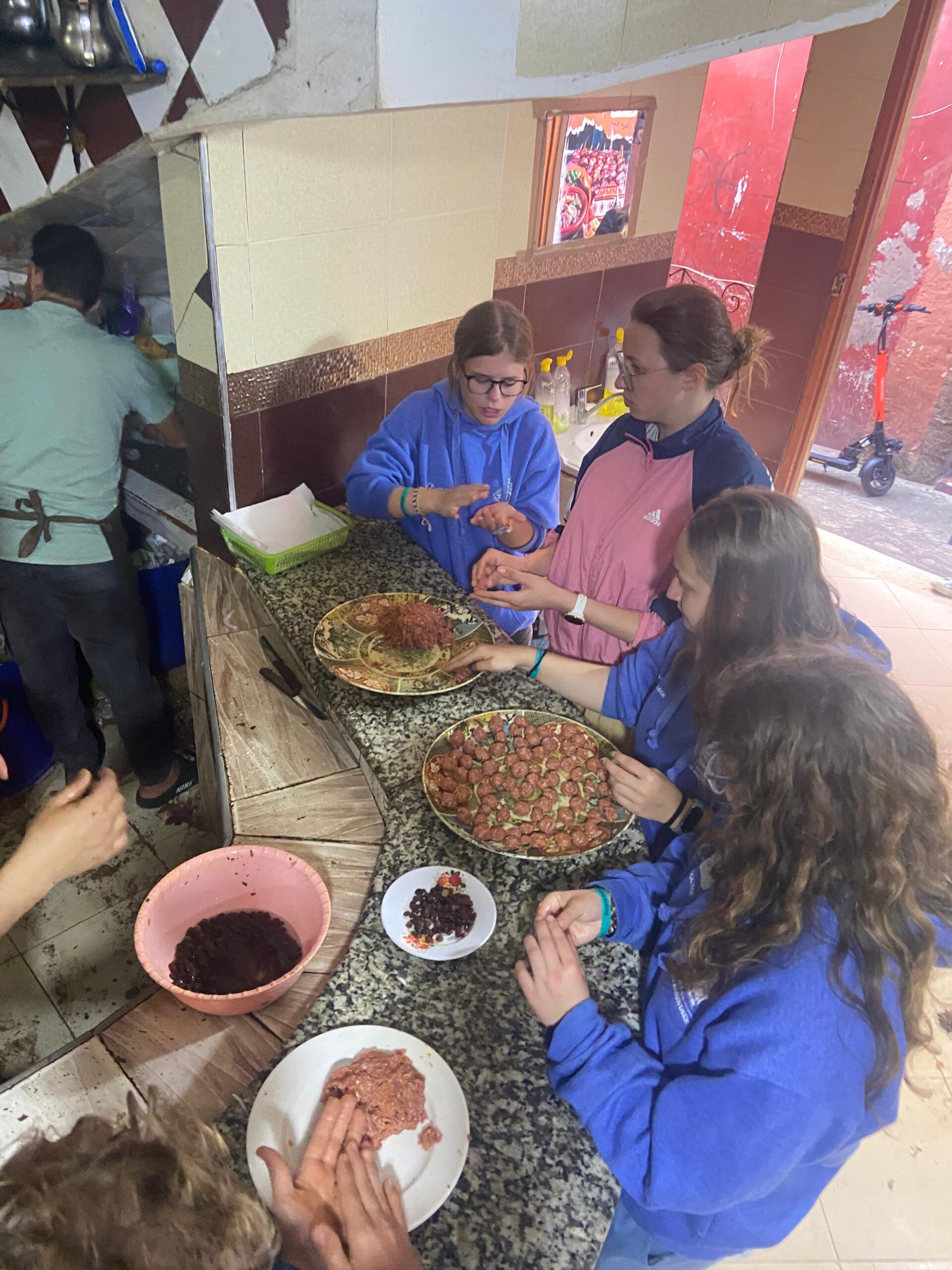 Dadurch, dass unser Koch öfter Zwiebeln schneidet als wir, hat er sich sehr darüber amüsiert, dass unsere Augen dauerhaft getränt haben. Das Problem: Das Lachen unseres Kochs war so lustig, dass wir alle gleichzeitig Zwiebeln geschnitten, gelacht und geheult haben.