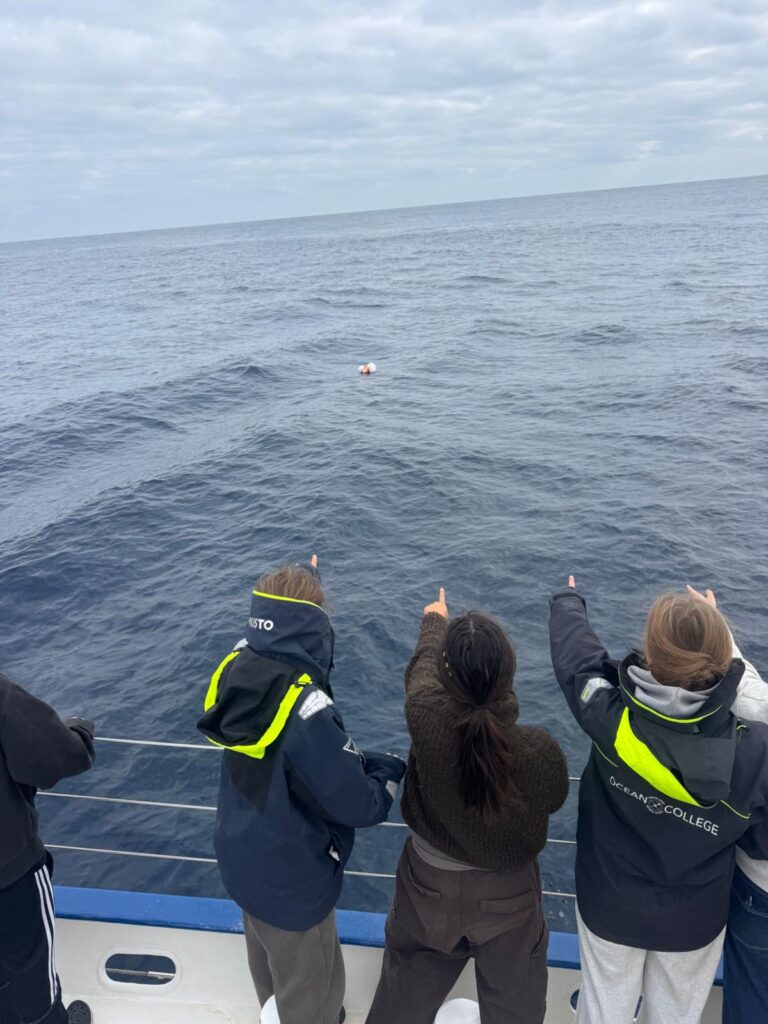 While that, it’s important to always keep the person in the water in sight. Therefore we pointed with our arms to the dummy.