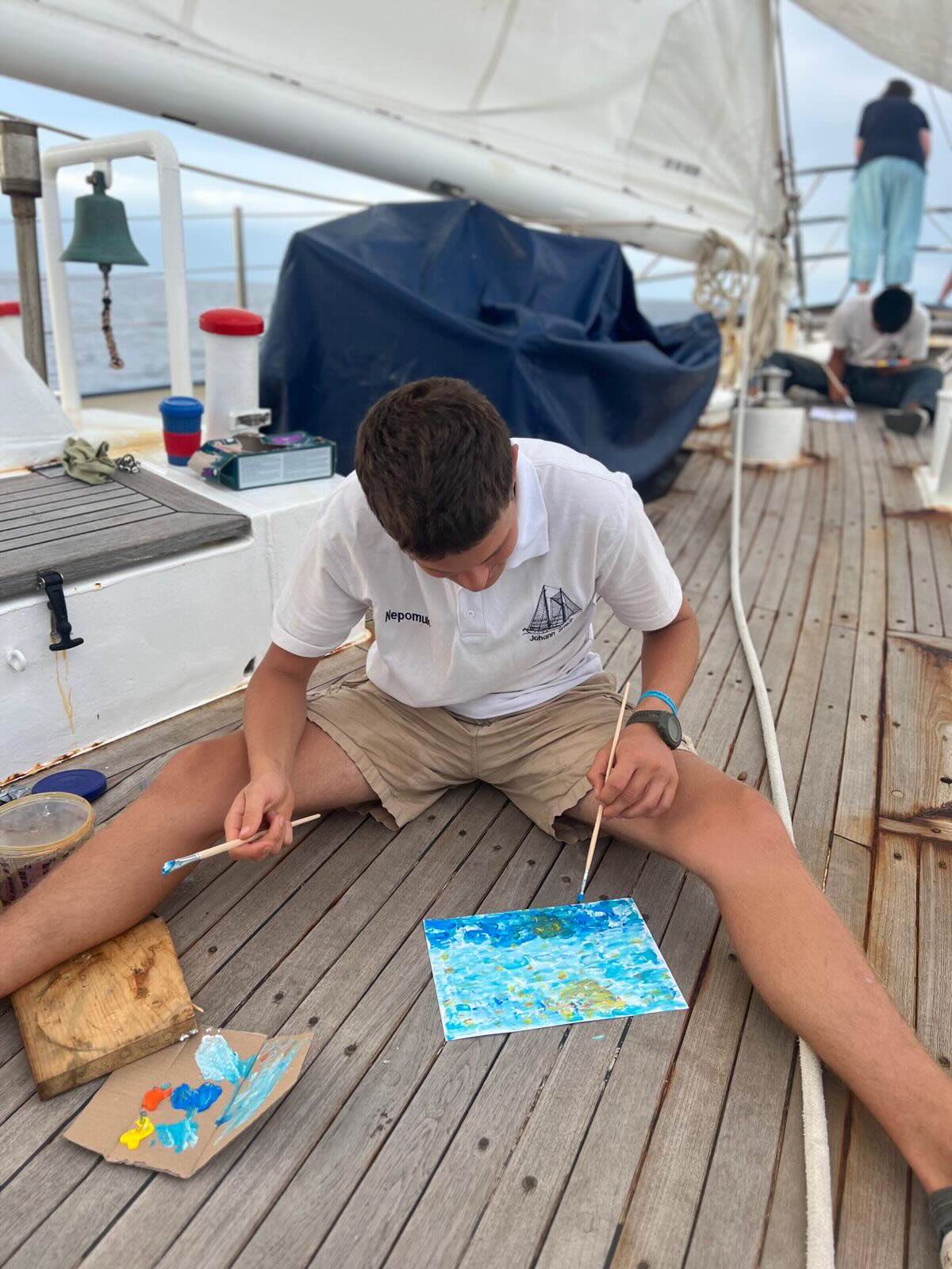 After the crew meeting, where we planned the free Sunday, we went to lunch. Today we had rice with an oriental sauce (super delicious). After we finished school and after the cake break, we had a drawing class where we had to draw the sea 🌊 in Expressionism.