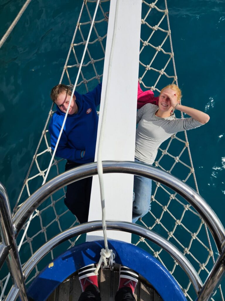 As you just saw, the day started with a birthday brunch 🙂 Because Emil and Nepomuk both turned a year older today. Everybody sat down at the tables in the mess and immediately our captain told us the bad news: A roach had been sighted and we had to repair the Rahsail, more about that later.