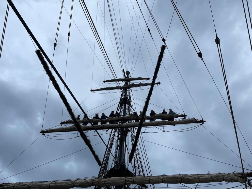 Danach kam das Highlight, auf das wir uns schon länger gefreut haben: Wir durften ins Rigg (d. h. wir durften Klettern). Dabei haben wir uns in unheimliche Höhen gewagt und konnten eine Aussicht wie noch nie zuvor auf der Reise genießen.
